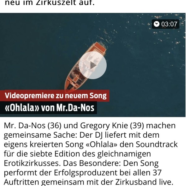 Mr.Da-Nos liefert den Titelsong für Knies Erotik-Zirkus Ohlala – Vom Club in die Manege! Mr.Da-Nos (36) und Gregory Knie (39) machen gemeinsame Sache: Der DJ und Produzent liefert mit dem […]…