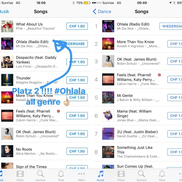 OHLALA SONG AUF PLATZ 1 DER ITUNES CHARTS