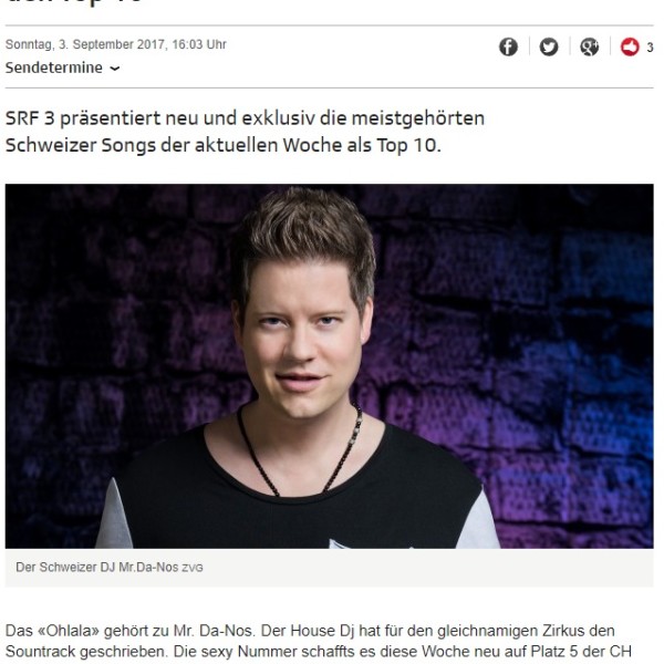 Der neue Song Ohlala gehört zu den meistgehörten Songs der Schweiz! SRF 3 präsentiert neu und exklusiv die meistgehörten Schweizer Songs der aktuellen Woche als Top 10. SRF3 CHARTS Official […]…